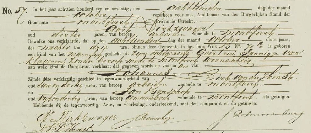 Pieter DIRKZWAGER [scrapbook]-15277 was born in 08 Mei 1875 in Montfoort. He died in 22 Okt 1875 in Montfoort.