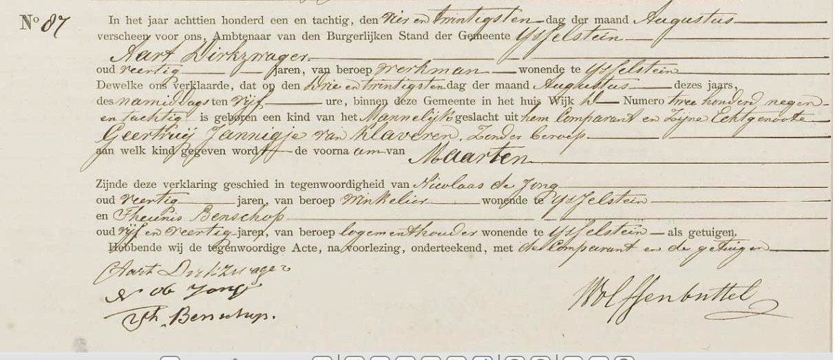 Maarten DIRKZWAGER [scrapbook]-15282 was born on 23 Aug 1881 in IJsselstein.