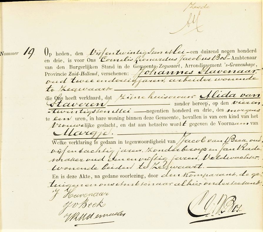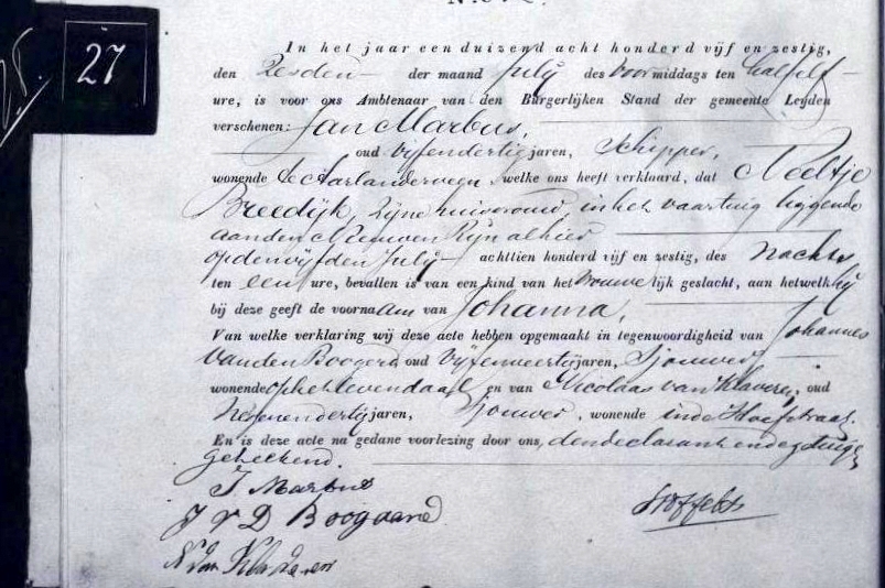 Opmerking * Aktenaam: Geboorteakte Jan Hermanus de Gans, 09-01-1898, Zevenhoven * Tijdstip: 09:30 uur * Gemeente: Zevenhoven * Aangever: Arie Bernardus de Gans * Getuige: Hendrik van der Sluis Willem van der Vos * Beginjaar aangever: 1898 * Eindjaar aangever: 1898 * Geslachtsnaam aangever: Arie Bernardus de Gans * Opmerkingen aangever: vader * Rol aangever: Aangever * Beginjaar getuige: 1898 * Eindjaar getuige: 1898 * Geslachtsnaam getuige: Hendrik van der Sluis * Beroep getuige: winkelier * Leeftijd getuige: 82 jaar * Opmerkingen getuige: Nieuwveen * Rol getuige: Getuige * Beginjaar getuige: 1898 * Eindjaar getuige: 1898 * Geslachtsnaam getuige: Willem van der Vos * Beroep getuige: gemeentesecretaris * Leeftijd getuige: 33 jaar *