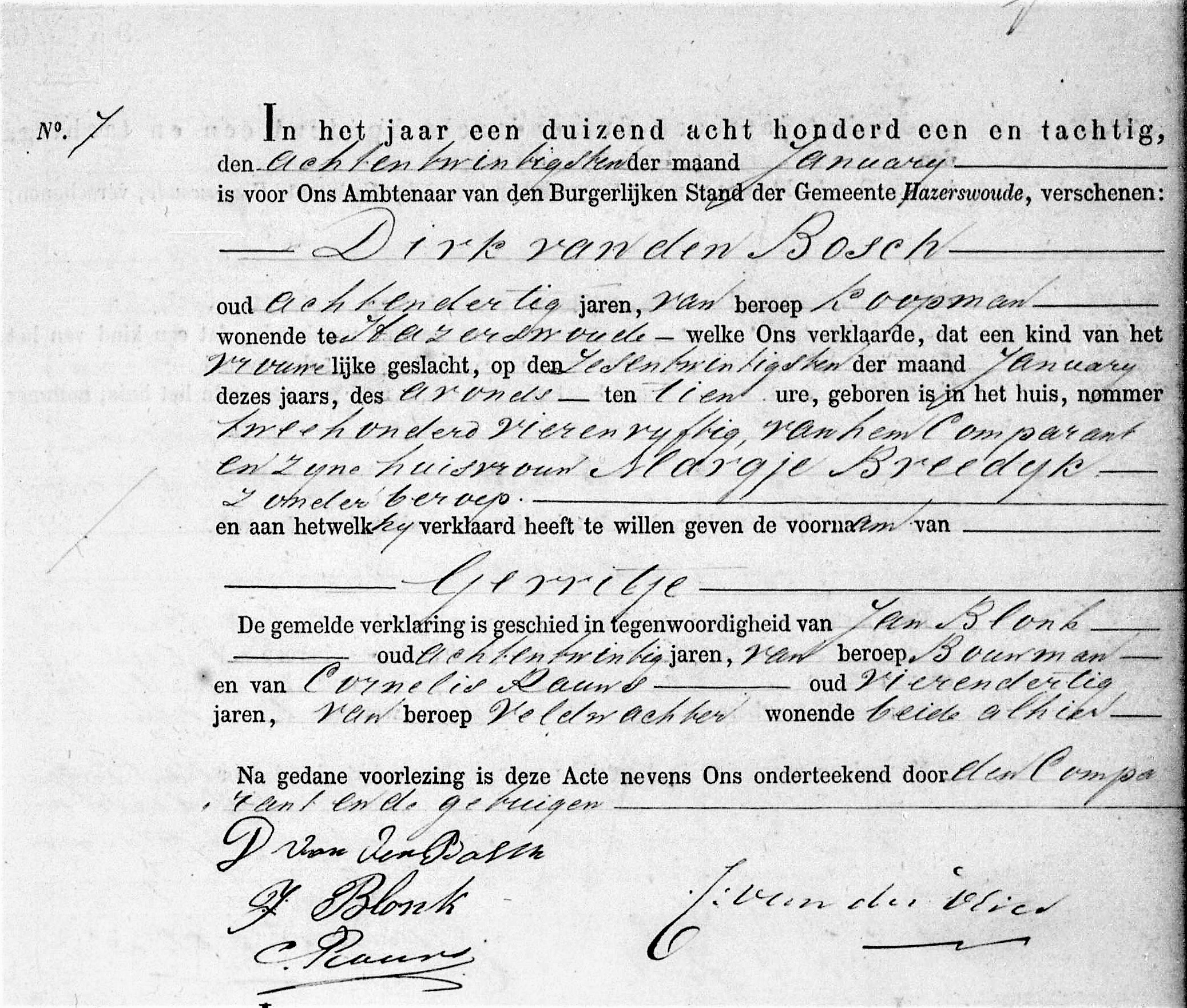 2078. Dirk BOSCH, VAN DEN [scrapbook]-1872 (Margje BREEDIJK , Dirk BREEDIJK , Peije BREEDIJK , Klaas Gijsbertz BREEDIJK , Gijsbert Claasz. BREEDIJK , Claas Cornelisz. BREEDIJCK , Cornelis Gerritsz. BREEDIJCK , Gerrit Cornelisse BREEDIJK , Cornelis Gerritse , Gerrit ) was born on 5 Jul 1870 in Hazerswoude. He died in 8 Mrt 1925 in Naaldwijk.