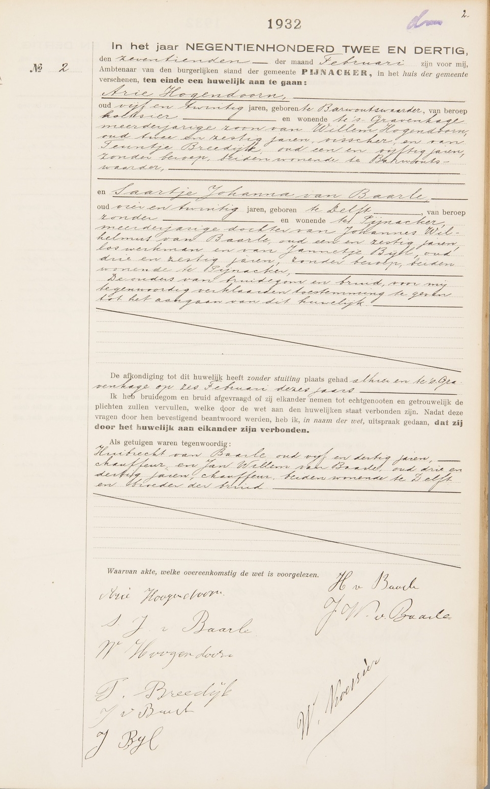 Vader bruidegom:Johannes Wilhelmus van Baarle