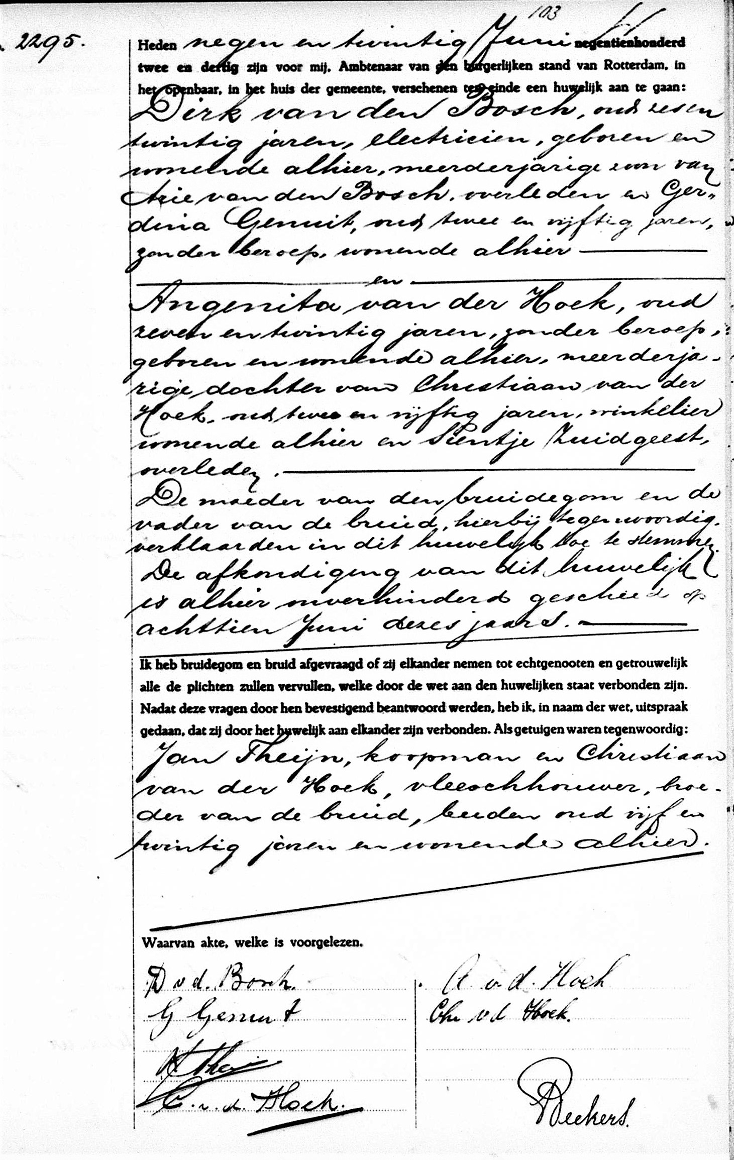Dirk married Eva VROLIJK [scrapbook]-17425 on 28 Nov 1923 in Rotterdam. Eva was born in 1900 in Rotterdam. Marriage Notes: