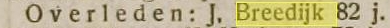 Jacomijntje Breedijk overleden