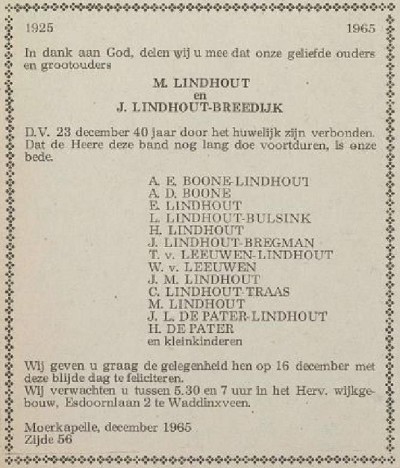 Marinus en Janna Lindhout-Breedijk 40 jaar getrouwd