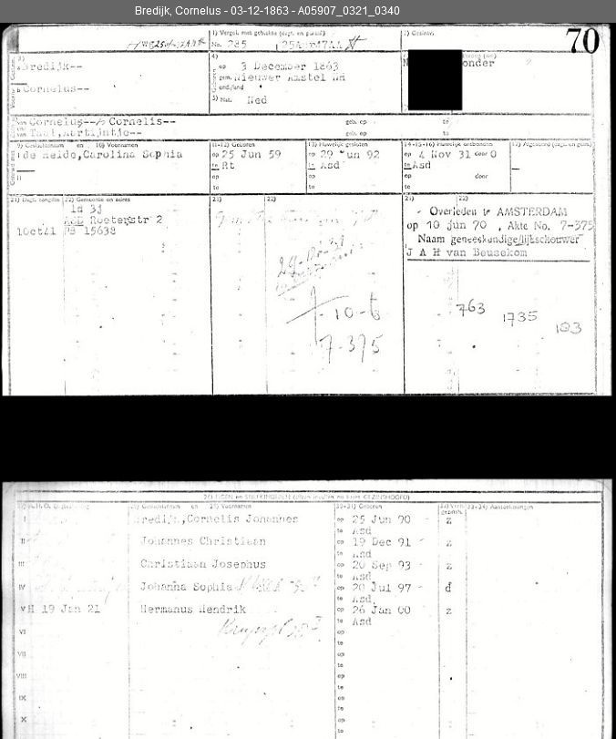 | Cornelus Bredijk, Gezinskaart III Amsterdam |