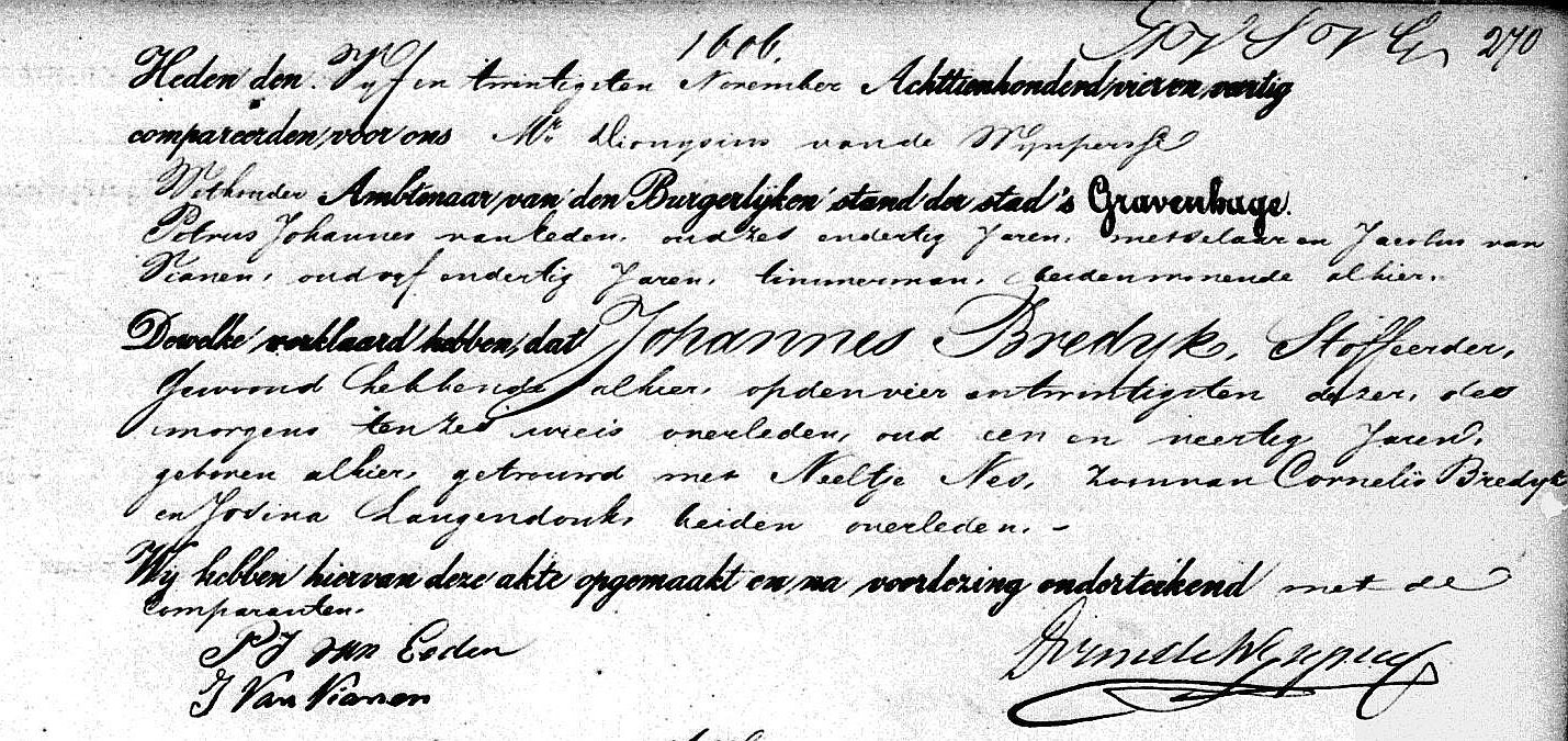 Overlijdensakte Johannes Cornelis Bredijk