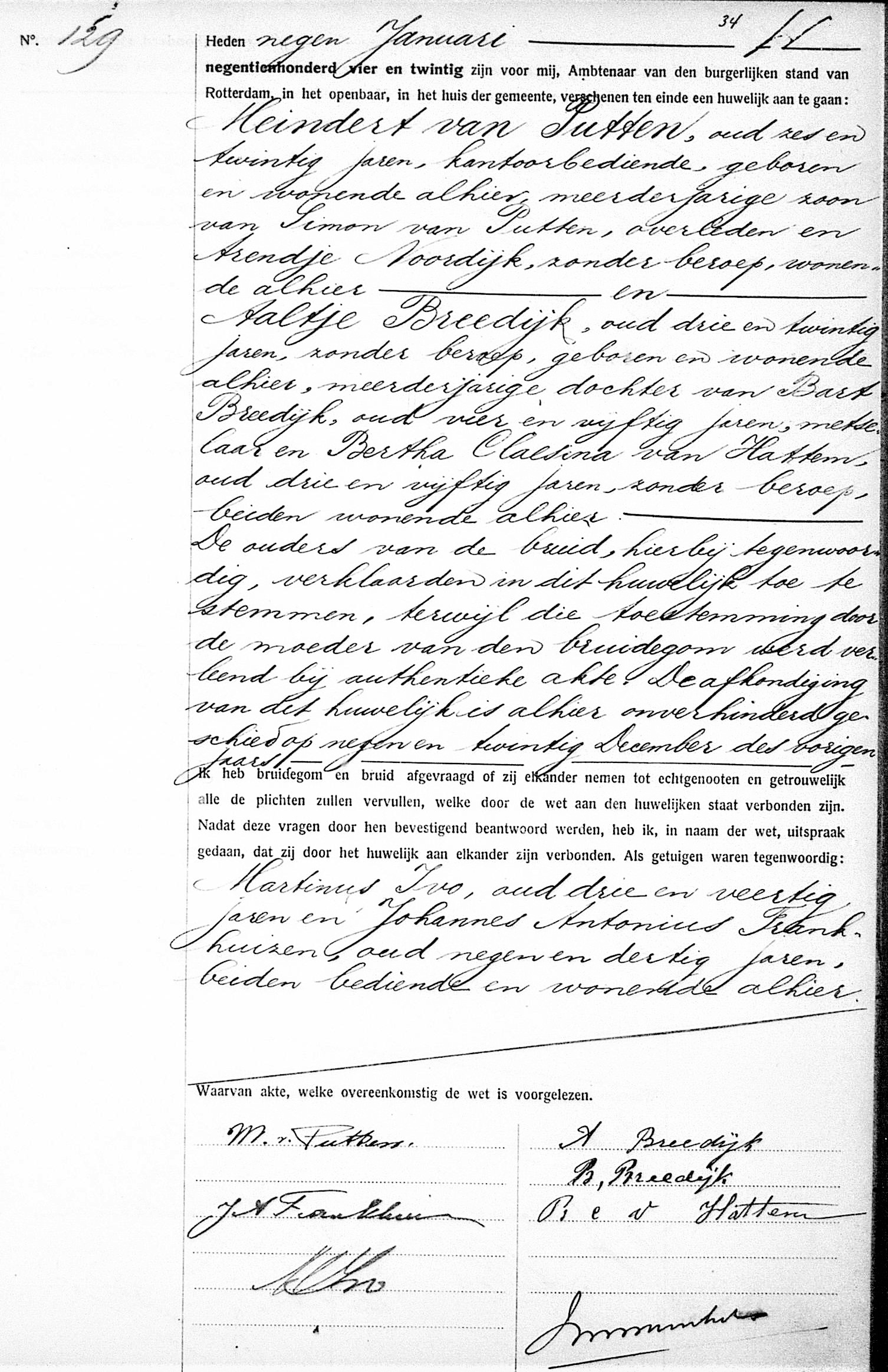 Huwelijksakte Meindert en Aaltje van Putten-Breedijk