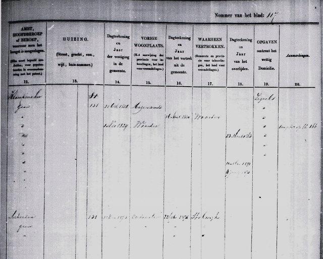 | Gezinskaart Coenraad Hendrik Bardelmeijer Woonde waarschijnlijk bij zoon Willem in. |