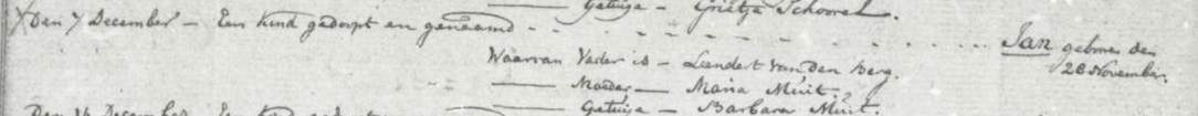 656. Pieternella BERG, VAN DER [scrapbook]-7690 (Maria Jansd MUIJT , Johannes Dirksz MUIJT , Dirk Roelen , Roel Dircks , Dirk Roelen , Roel Claes , Claes Dirck Jansz , Dirck Janse ) was born on 17 Feb 1803 in Sluipwijk. She was christened on 27 Feb 1803 in Sluipwijk. She died in 3 Mrt 1875 in Reeuwijk. |