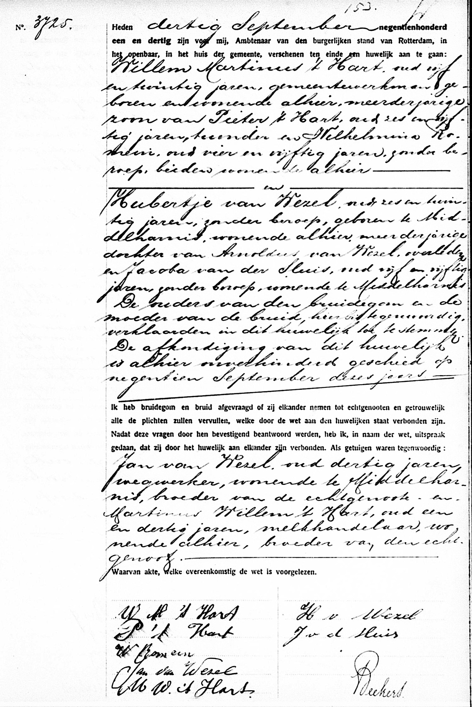 Hendrik married Jacoba Johanna RUITER, DE [scrapbook]-10199, daughter of Jacobus Johannes RUITER, DE-10200 and Johanna Elisabeth DEVENTER, VAN-8079, on 19 Dec 1918 in Schiedam. Jacoba was born on 9 Feb 1898 in Culemborg.