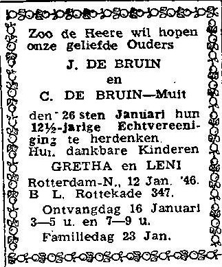 Jan en Cornelia de Bruin-Muit twaalf en een half jaar getrouwd 1946