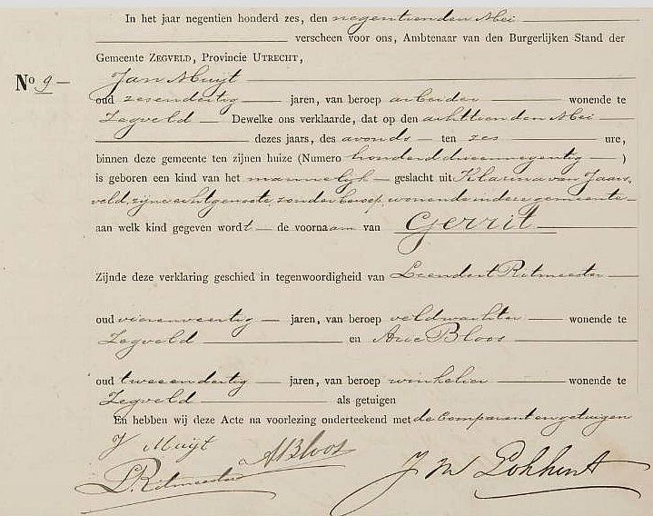 | Huwelijksakte Gerrit en Jannigje Muijt-Spelt |