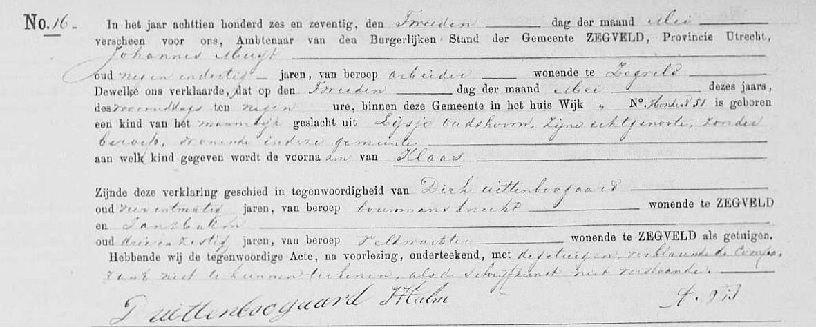 | Huwelijksakte Klaas Muijt en Evertje Uithol in Kamerik |