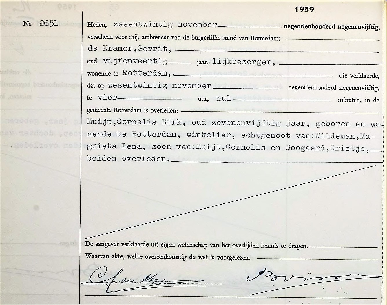 Huwelijksakte Cornelis Dirk en Margrietha Lena Muijt-Wildeman