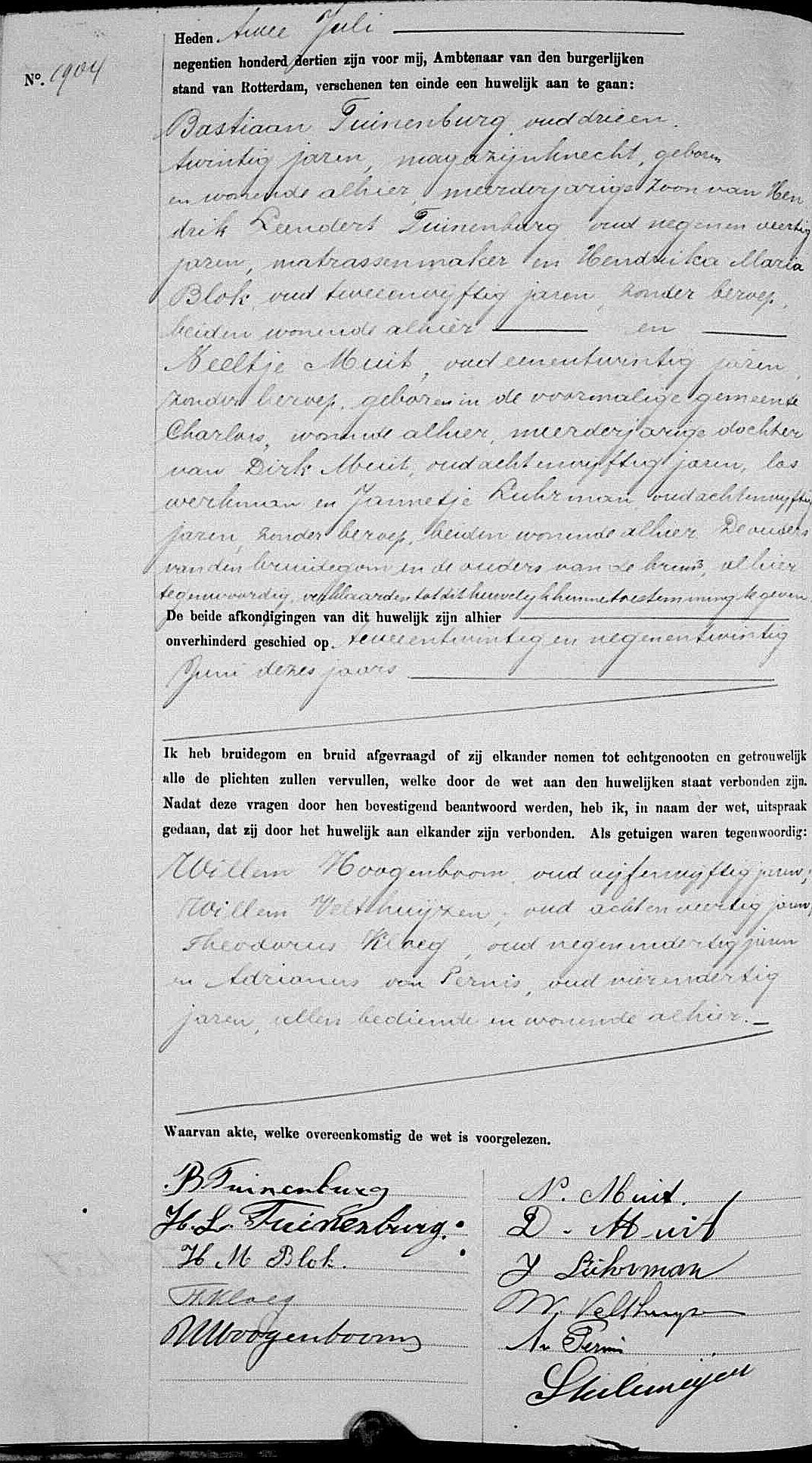Huwelijksakte Bastiaan en Neeltje Tuinenburg-Muit